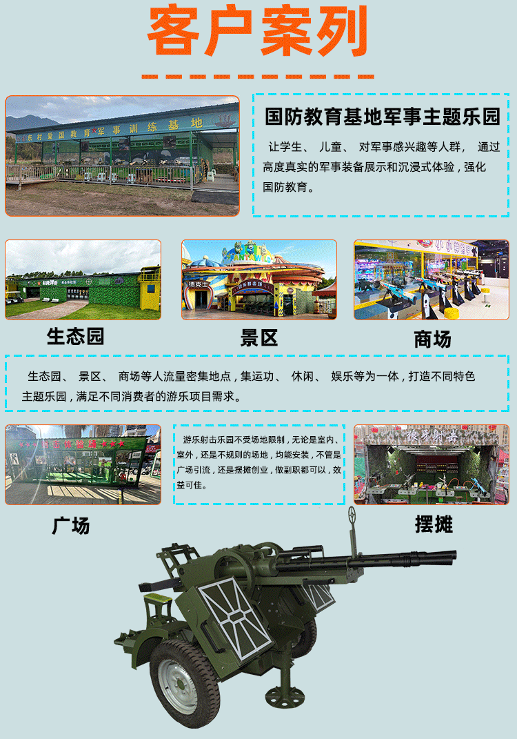 新款小型游乐气炮枪 尺寸:1.25*0.36*0.40米 射程:4-8米 重量:10.8kg